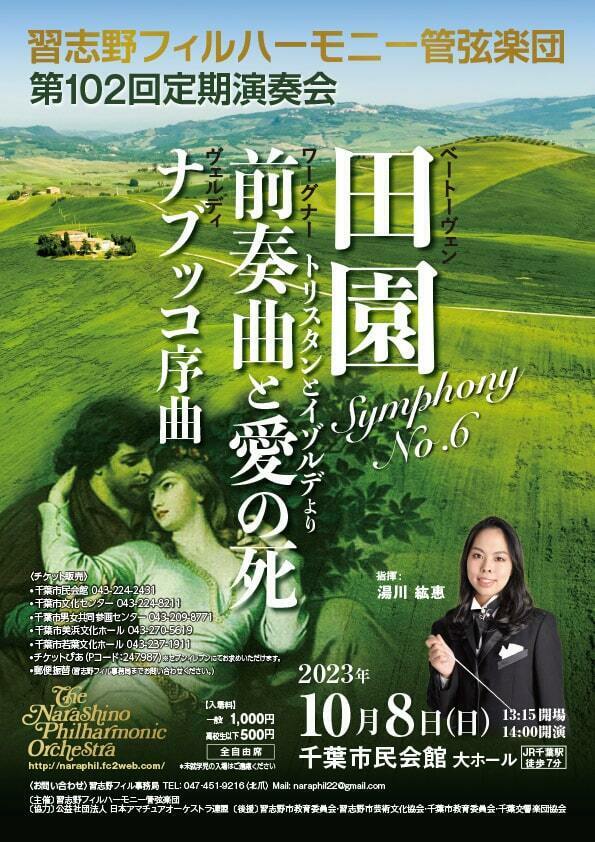 習志野フィルハーモニー管弦楽団第102回定期演奏会 23/10/8(日) 千葉市民会館 大ホール シェア ツイート ヴェルディ:歌劇ナブッコ序曲/ワーグナー:トリスタンとイゾルデ前奏曲と愛の死/ベートーヴェン:交響曲第6番「田園」 公演情報 ジャンル オーケストラ 料金 全席自由 一般-1,000円 全席自由 高校生以下-500円 表示できるチケット情報はありません詳しくはこちら キャスト&スタッフ 指揮 湯川紘惠 管弦楽 習志野フィルハーモニー管弦楽団 お問い合わせ 習志野フィルハーモニー管弦楽団事務局(北爪) 公式サイト シェア ツイート