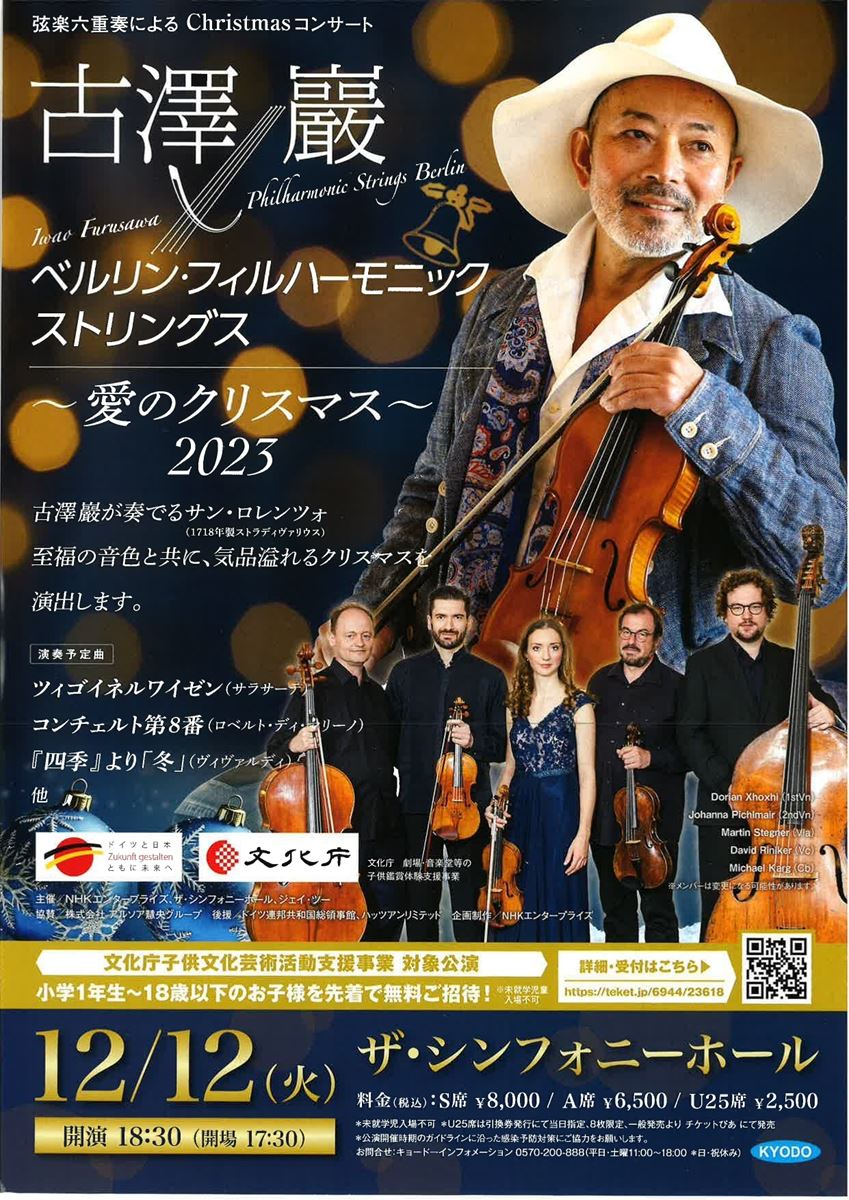 古澤巖(vl)/ベルリン・フィルハーモニック ストリングス 23/12/12(火) ザ・シンフォニーホール シェア ツイート すべての写真(2)を見る ~愛のクリスマス2023~ すべての写真(2)を見る 公演情報 ジャンル 器楽 室内楽 未就学児童は入場不可。 料金 S席-8,000円 A席-6,500円 表示できるチケット情報はありません詳しくはこちら キャスト&スタッフ 出演 古澤巖 ベルリン・フィルハーモニックストリングス お問い合わせ キョードーインフォメーション 公式サイト シェア ツイート