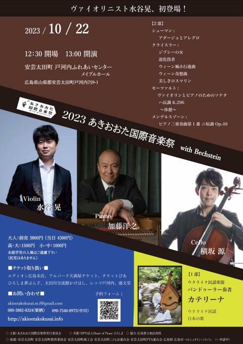 あきおおた国際音楽祭 23/10/22(日) 戸河内ふれあいセンター シェア ツイート この度結成した話題の演奏家、加藤洋之率いる横坂源、水谷晃のトリオをお楽しみに 公演情報 ジャンル 器楽 室内楽 未就学児の入場はご遠慮ください。 料金 全席自由 一般-3,800円 全席自由 大学生-1,500円 全席自由 高校生-1,500円 全席自由 中学生-1,000円 全席自由 小学生-1,000円 表示できるチケット情報はありません詳しくはこちら キャスト&スタッフ 出演 加藤洋之 横坂源 水谷晃 カテリーナ [出演]加藤洋之 / 横坂源 / 水谷晃 / カテリーナ お問い合わせ あきおおた国際音楽祭実行委員会事務局 シェア ツイート