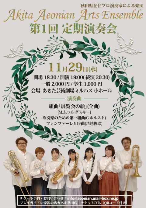 Akita Aeonian Arts Ensemble 演奏会 23/11/29(水) あきた芸術劇場ミルハス 小ホールA シェア ツイート すべての写真(2)を見る 秋田在住プロ演奏家による楽団、Akita Aeonian ArtsEnsembleの第一回定期演奏会 すべての写真(2)を見る 公演情報 ジャンル 器楽 室内楽 料金 一般-2,000円 大学生以下-1,000円 表示できるチケット情報はありません詳しくはこちら キャスト&スタッフ 演奏 諸越俊玲 檜森なるみ 石崎巴 扇田泰子 門脇侑希 小松紀之 宮崎彩香 [演奏]諸越俊玲 / 檜森なるみ / 石崎巴 / 扇田泰子 / 門脇侑希 / 小松紀之 / 宮崎彩香 お問い合わせ Akita Aeonian Arts Ensemble シェア ツイート