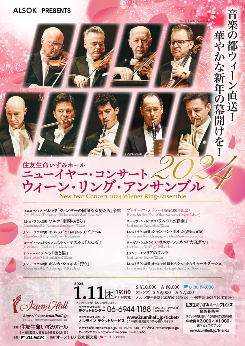 住友生命いずみホール ニューイヤー・コンサート2024 ウィーン・リング・アンサンブル 24/1/11(木) 住友生命いずみホール シェア ツイート 華やかな新年の幕開けを!音楽の都ウィーン直送! 公演情報 ジャンル 器楽 室内楽 U-30、ユースシートは取り扱いなし。未就学児童は入場不可。 料金 S席-10,000円 A席-8,000円 表示できるチケット情報はありません詳しくはこちら キャスト&スタッフ 出演 ウィーン・リング・アンサンブル お問い合わせ いずみホールチケットセンター 公式サイト シェア ツイート