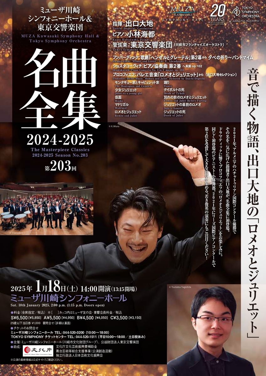 ミューザ川崎シンフォニーホール&東京交響楽団 名曲全集第203回 25/1/18(土) ミューザ川崎シンフォニーホール シェア ツイート すべての写真(2)を見る すべての写真(2)を見る 公演情報 ジャンル オーケストラ 未就学児童は入場不可。車椅子席は問合せ先まで。 料金 S席-6,500円 A席-5,500円 B席-4,500円 C席-3,500円 表示できるチケット情報はありません詳しくはこちら キャスト&スタッフ 指揮 出口大地 ピアノ 小林海都 管弦楽 東京交響楽団 お問い合わせ ミューザ川崎シンフォニーホール 公式サイト シェア ツイート