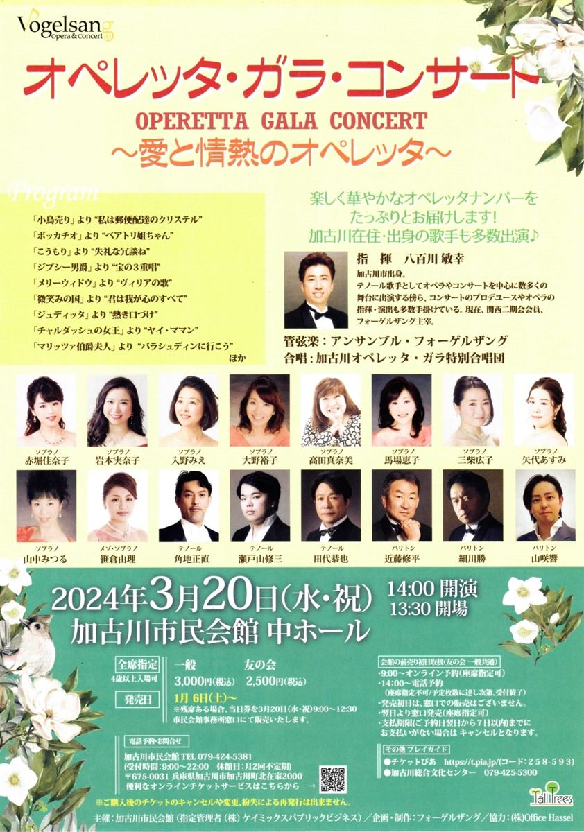 オペレッタ・ガラ・コンサート 24/3/20(水) 加古川市民会館 中ホール シェア ツイート 楽しく華やかなオペレッタナンバーをたっぷりとお届けします!加古川在住・出身の歌手も多数出演 ♪ 公演情報 ジャンル 声楽 ※4歳未満は入場不可 料金 一般-3,000円 表示できるチケット情報はありません詳しくはこちら キャスト&スタッフ 指揮 八百川敏幸 お問い合わせ 加古川市民会館 公式サイト シェア ツイート