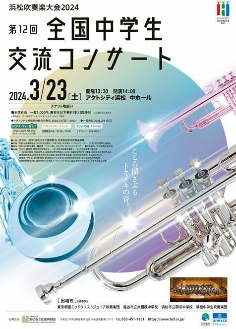 浜松吹奏楽大会2024 第12回全国中学生交流コンサート 24/3/23(土) アクトシティ浜松 中ホール シェア ツイート 公演情報 ジャンル 吹奏楽 荷物などによる座席の取り置きはお断りいたします。未就学児童は入場不可。 料金 全席自由/一般-1,000円 表示できるチケット情報はありません詳しくはこちら お問い合わせ 浜松市文化振興財団 公式サイト シェア ツイート