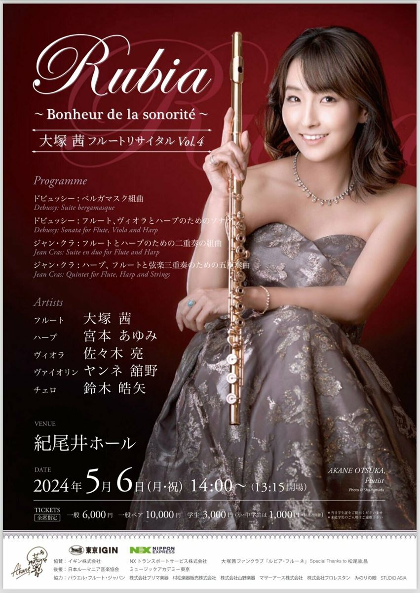 大塚茜フルートリサイタル Vol.4 24/5/6(月) 紀尾井ホール シェア ツイート 公演情報 ジャンル 器楽 室内楽 未就学児の入場はいただけません。発熱のある方のご入場はいただけません。チケットの払い戻しは不可な場合があります。演奏者の都合によりプログラム等の変更があります。 料金 全席指定-6,000円 表示できるチケット情報はありません詳しくはこちら キャスト&スタッフ 出演 大塚茜 宮本あゆみ 佐々木亮 ヤンネ舘野 鈴木皓矢 お問い合わせ ルビア・フルーネ事務局 シェア ツイート