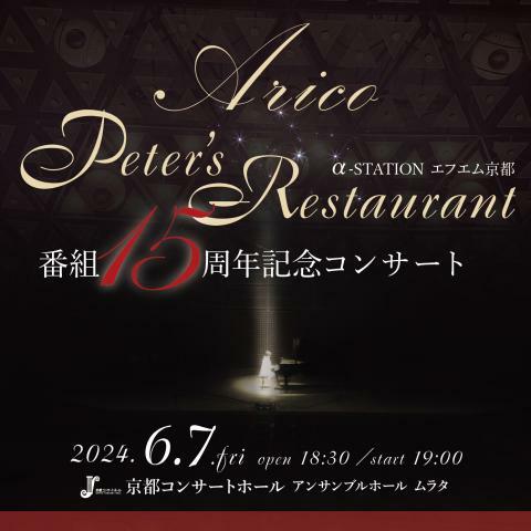 アリコ・ピータース・レストラン 番組15周年記念コンサート 24/6/7(金) 京都コンサートホール 小ホール シェア ツイート すべての写真(4)を見る エフエム京都「Arico Peter's Restaurant」番組15周年記念ピアノコンサート! すべての写真(4)を見る 公演情報 ジャンル ピアノ・鍵盤楽器 ※未就学児入場不可 ※小学生以上チケット必要 料金 前売り-3,000円 表示できるチケット情報はありません詳しくはこちら キャスト&スタッフ 出演 Arico 沼田聡 藤澤ばやん お問い合わせ 株式会社アークコーポレーション シェア ツイート