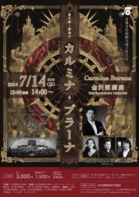 音楽文化国際交流2024 カルミナ・ブラーナ 24/7/14(日) 金沢歌劇座 シェア ツイート カール・オルフの代表作「カルミナ・ブラーナ」を地元オーケストラと合唱団で! 公演情報 ジャンル オーケストラ 料金 全席自由 一般-3,000円 全席自由 高校生以下-1,500円 表示できるチケット情報はありません詳しくはこちら キャスト&スタッフ 指揮 辻博之 独奏・独唱 石川公美 原田勇雅 Roberto Di Candido [指揮]辻博之 [独奏・独唱]石川公美 / 原田勇雅 / Roberto Di Candido お問い合わせ 石川県音楽文化協会 シェア ツイート