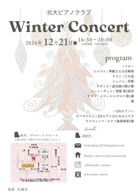 北大ピアノクラブ ウィンターコンサート 24/12/21(土) 札幌ザ・ルーテルホール シェア ツイート 北大ピアノクラブの部員が1年間の集大成として創り上げる、本格的なクラシックコンサート 公演情報 ジャンル 器楽 室内楽 料金 全席自由-600円 表示できるチケット情報はありません詳しくはこちら お問い合わせ hokudaipc2024@gmai.com シェア ツイート
