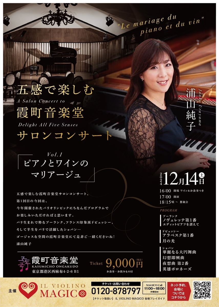 五感で楽しむ霞町音楽堂サロンコンサート 24/12/14(土) 霞町音楽堂 シェア ツイート Vol.1 ピアノとワインのマリアージュ 公演情報 ジャンル ピアノ・鍵盤楽器 料金 料金-9,000円お食事、お飲み物付き キャスト&スタッフ ピアノ 浦山純子 お問い合わせ MAGICO Call 公式サイト シェア ツイート