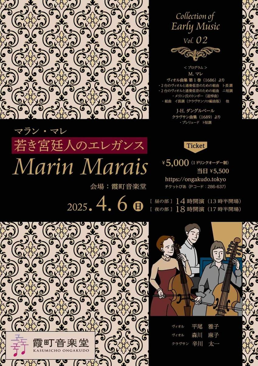Collection of Early Music Vol.2 25/4/6(日) 霞町音楽堂 シェア ツイート 「霞町音楽堂×古楽」シリーズ第2弾!マラン・マレ 若き宮廷人のエレガンス 公演情報 ジャンル 器楽 室内楽 要1ドリンクオーダー 料金 全席自由-5,000円 表示できるチケット情報はありません詳しくはこちら キャスト&スタッフ 出演 平尾雅子 森川麻子 辛川太一 お問い合わせ 霞町音楽堂 公式サイト シェア ツイート