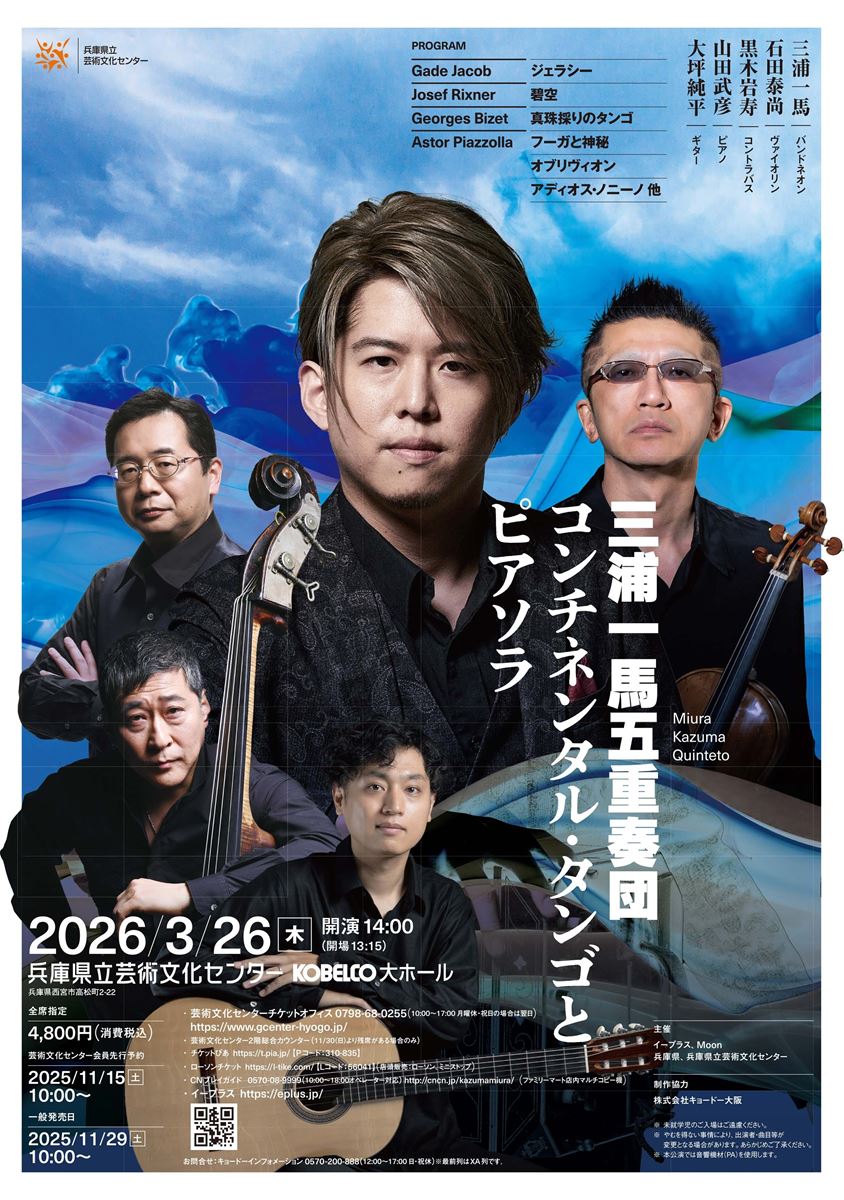 三浦一馬キンテート 26/3/26(木) 兵庫県立芸術文化センター KOBELCO大ホール シェア ツイート すべての写真(2)を見る ーコンチネンタル・タンゴとピアソラー すべての写真(2)を見る 公演情報 ジャンル 器楽 室内楽 ※未就学児童は入場不可。 料金 全席指定-4,800円 表示できるチケット情報はありません詳しくはこちら キャスト&スタッフ 出演 三浦一馬キンテート メンバー 三浦一馬 石田泰尚 黒木岩寿 山田武彦 大坪純平 お問い合わせ キョードーインフォメーション 公式サイト シェア ツイート