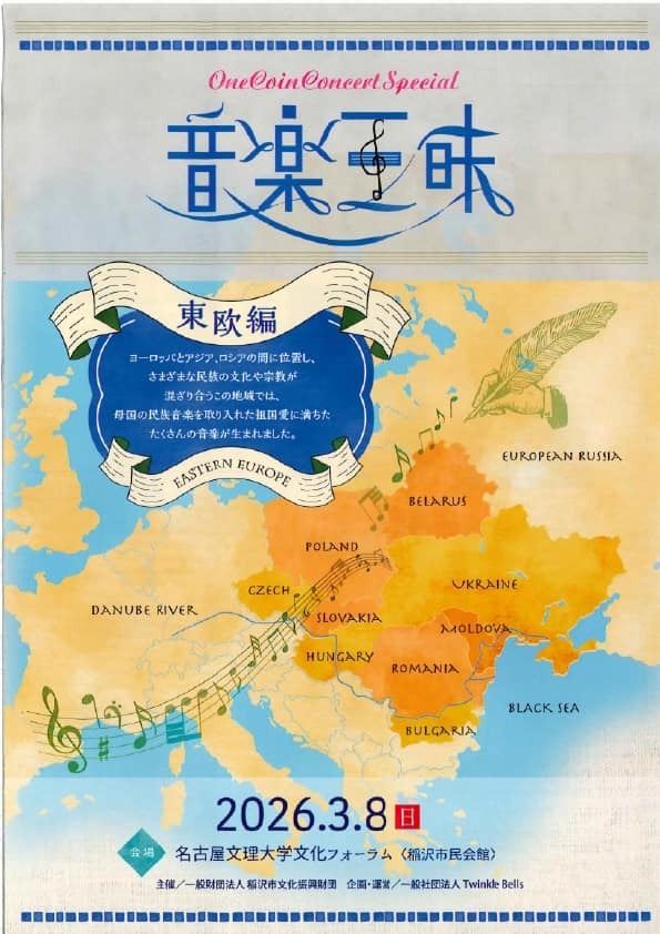 ワンコインコンサートスペシャル音楽三昧 ~東欧編~ 26/3/8(日) 名古屋文理大学文化フォーラム 全館 シェア ツイート 公演情報 ジャンル 器楽 室内楽 ※3歳未満は保護者膝上に限り無料。但し、席が必要な場合は有料。※小さなお子様も参加可能ですが、ホール内では他の方のご迷惑になりませんよう、保護者の方のご配慮お願いします。※12:00~17:00まで、大中小ホール・練習室4にて各ステージあり。タイムスケジュールは会館HPやチラシにてご確認ください。※公演当日、大ホール入り口にてチケットはフリーパスにお引換ください。 料金 全席自由-1,000円 全席自由-当日フリーパスに要引換 表示できるチケット情報はありません詳しくはこちら キャスト&スタッフ 指揮 古谷誠一 出演 蔦谷明夫 セントラル愛知交響楽団 近藤聡美 お問い合わせ 名古屋文理大学文化フォーラム(稲沢市民会館) 公式サイト シェア ツイート