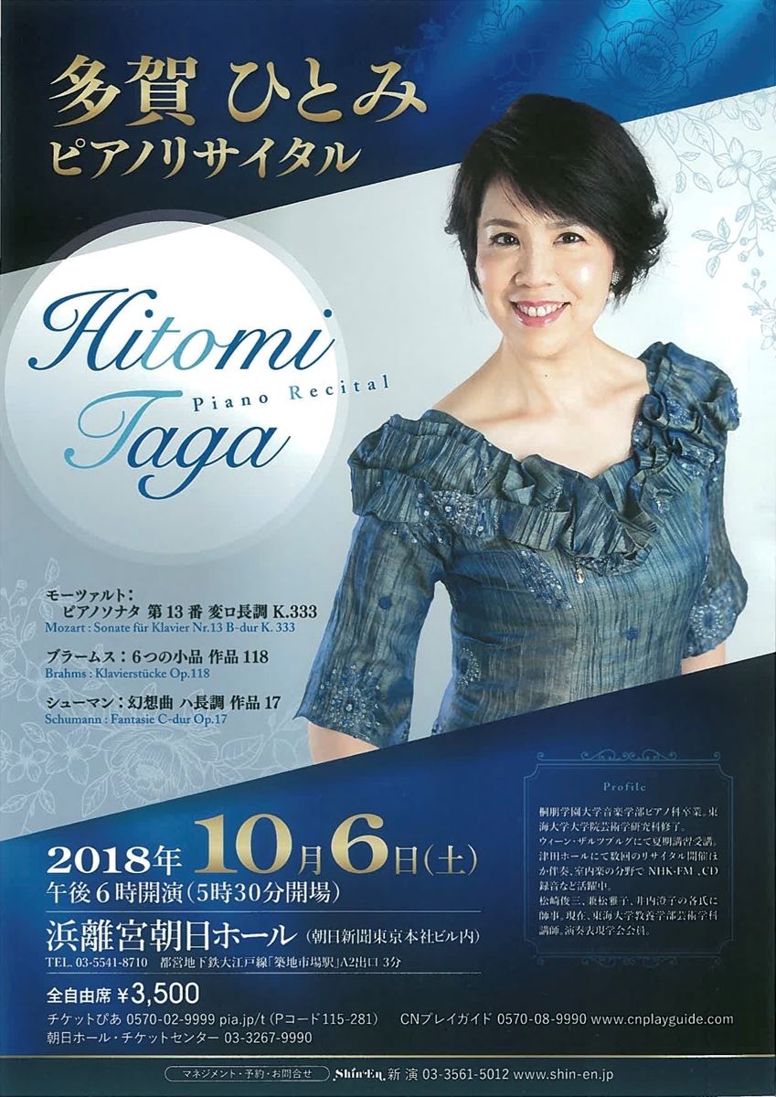 多賀ひとみピアノリサイタル 18/10/6(土) 浜離宮朝日ホール シェア ツイート モーツァルト:ピアノソナタ 第13番 変ロ長調 K.333/ブラームス:6つの小品 作品118/シューマン:幻想曲 ハ長調 作品17 公演情報 ジャンル オーケストラ 未就学児童は入場不可。 料金 全席自由:3,500円 表示できるチケット情報はありません詳しくはこちら キャスト&スタッフ ピアノ 多賀ひとみ お問い合わせ 新演 公式サイト シェア ツイート