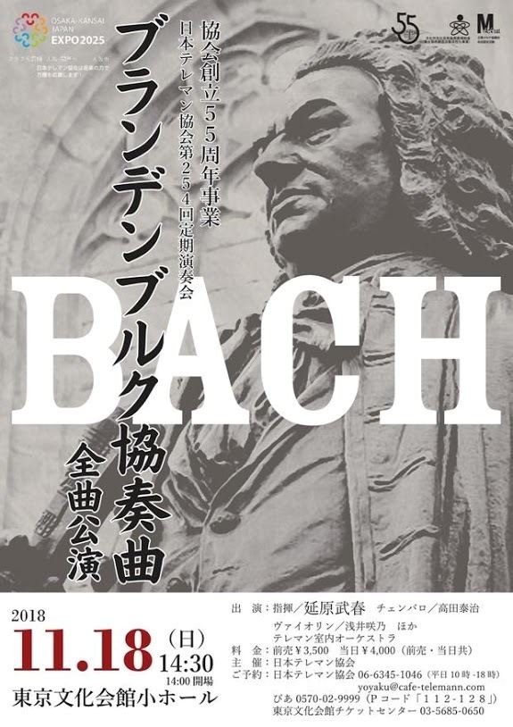 協会創立55周年事業 日本テレマン協会 第254回定期演奏会 18/11/18(日) 東京文化会館 小ホール シェア ツイート J.S.バッハ:ブランデンブルク協奏曲全曲 第1番 ヘ長調 BWV1046、第2番 ヘ長調 BWV1047、第3番 ト長調 BWV1048、第4番 ト長調 BWV1049、第5番 ニ長調 BWV1050、第6番 変ロ長調 BWV1051 公演情報 ジャンル オーケストラ 料金 自由席:3,500円 表示できるチケット情報はありません詳しくはこちら キャスト&スタッフ 指揮 延原武春 チェンバロ 高田泰治 ヴァイオリン 浅井咲乃 管弦楽 テレマン室内オーケストラ お問い合わせ 日本テレマン協会(平日10:00~18:00) 公式サイト シェア ツイート