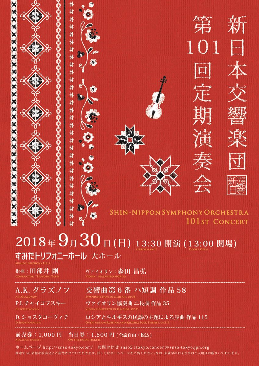 新日本交響楽団 第101回定期演奏会 18/9/30(日) すみだトリフォニーホール 大ホール シェア ツイート A.K.グラズノフ:交響曲第6番 ハ短調 作品58/P.I.チャイコフスキー:ヴァイオリン協奏曲 ニ長調 作品35/D.ショスタコーヴィチ:ロシアとキルギスの民謡の主題による序曲 作品115 公演情報 ジャンル オーケストラ 料金 全席自由 前売 1,000円 当日 1,500円 キャスト&スタッフ 指揮 田部井剛 ヴァイオリン:森田昌弘/管弦楽:新日本交響楽団 お問い合わせ 新日本交響楽団事務局 公式サイト シェア ツイート