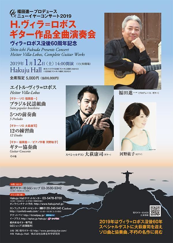 福田進一プロデュース ヴィラ=ロボス・ギター作品全曲演奏会/GGニューイヤーコンサート2019 19/1/12(土) HAKUJU HALL シェア ツイート ヴィラ=ロボス:5つの前奏曲、ブラジル民謡組曲、12の練習曲、ギター協奏曲 公演情報 ジャンル 器楽 料金 全席指定:5,000円当日:6,000円 キャスト&スタッフ ギター 福田進一 大萩康司 ピアノ:河野紘子 お問い合わせ 現代ギター社 公式サイト シェア ツイート