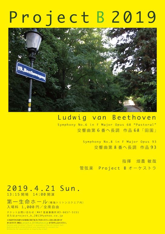 PROJECT B 2019 19/4/21(日) 第一生命ホール シェア ツイート ベートーヴェン:交響曲第6番 ヘ長調 op.68「田園」/ベートーヴェン:交響曲第8番 ヘ長調 op.93 公演情報 ジャンル オーケストラ 料金 全席自由:1,000円 キャスト&スタッフ 指揮:畑農敏哉/管弦楽:PROJECT Bオーケストラ お問い合わせ MAT音楽事務所 公式サイト シェア ツイート