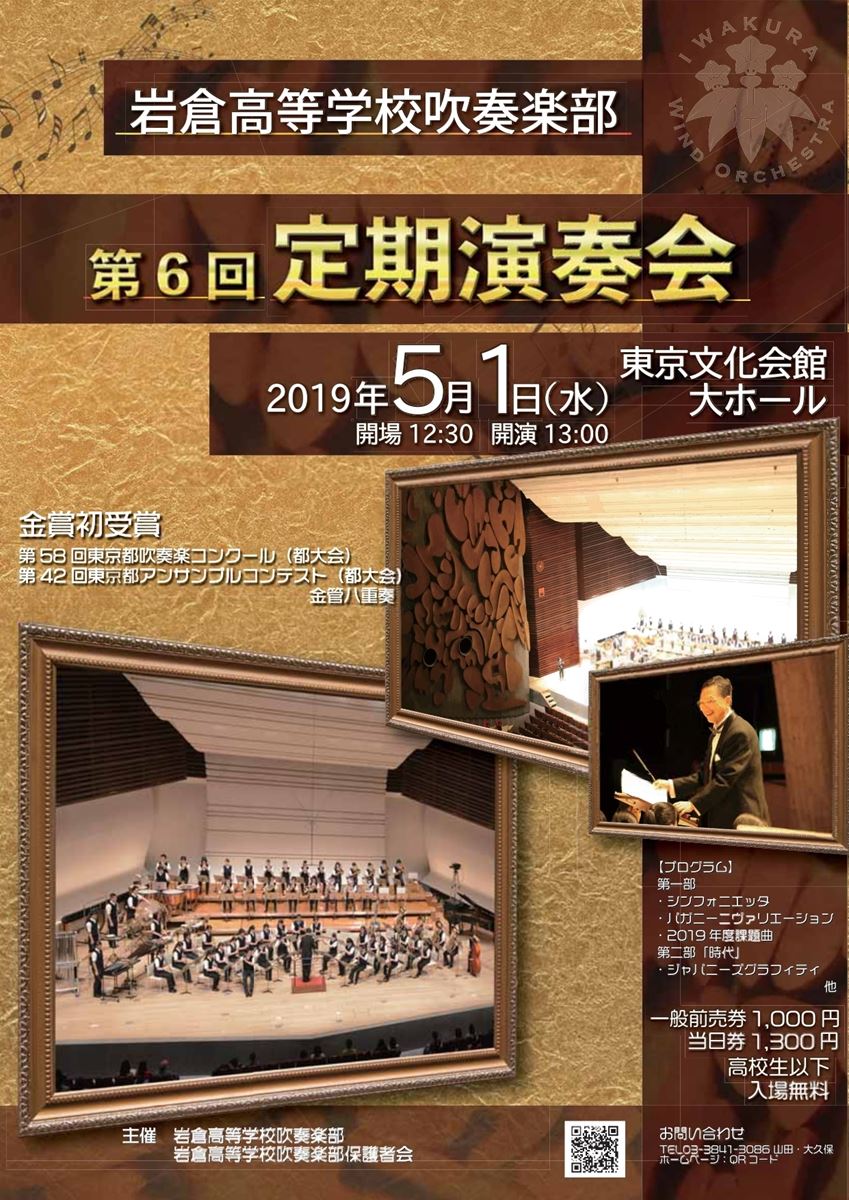 岩倉高等学校吹奏楽部 第6回定期演奏会 19/5/1(水) 東京文化会館大ホール シェア ツイート フィリップ・ウィルビー:パガニーニ・ヴァリエーション(2019年度全日本吹奏楽コンクール課題曲) 公演情報 ジャンル 吹奏楽 料金 自由:1,000円高校生以下無料 キャスト&スタッフ 吹奏楽:岩倉高等学校吹奏楽部 お問い合わせ 岩倉高等学校吹奏楽部 公式サイト シェア ツイート