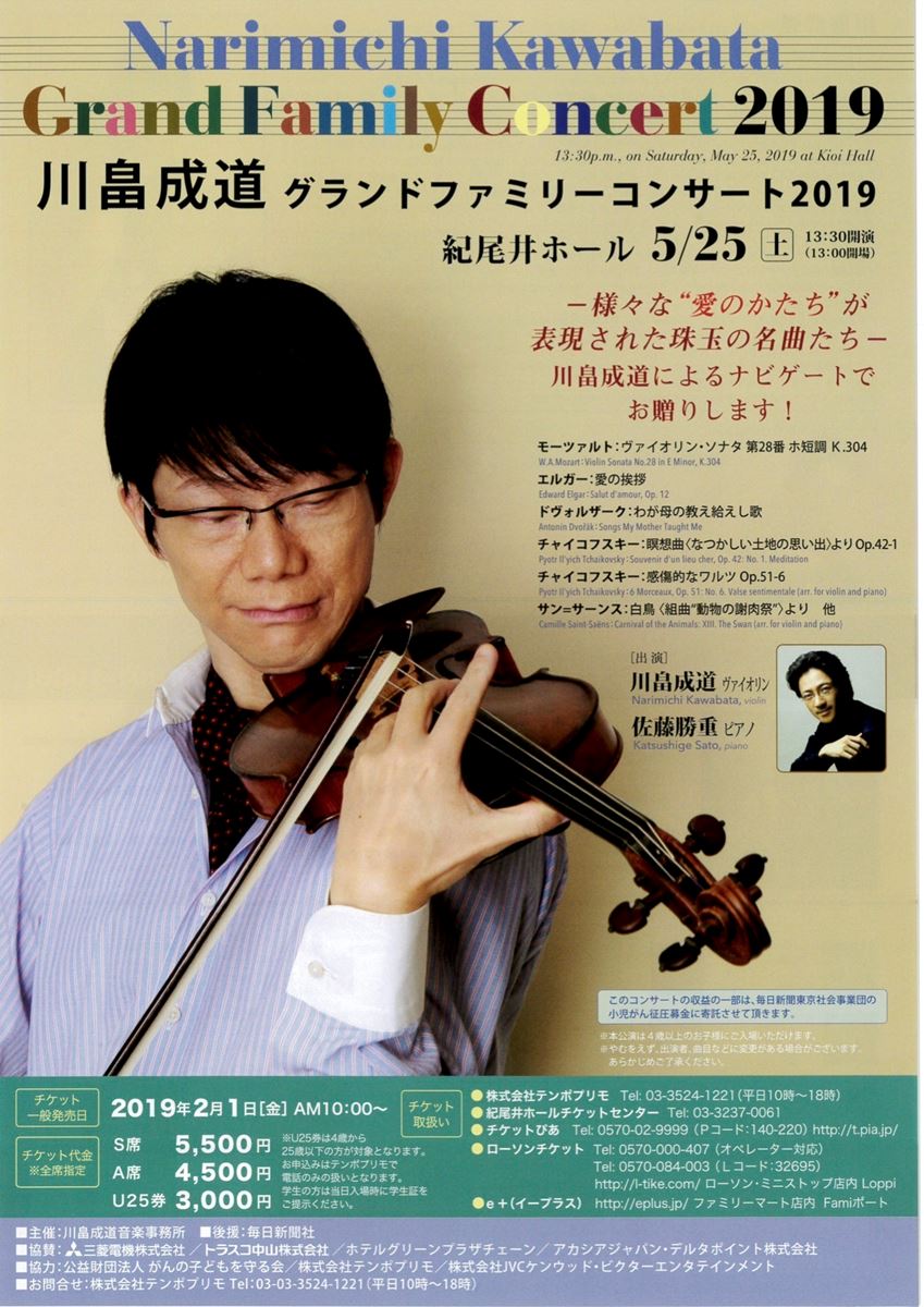 川畠成道 グランドファミリーコンサート2019 19/5/25(土) 紀尾井ホール シェア ツイート 様々な”愛のかたち”が表現された珠玉の名曲たち。川畠成通によるナビゲートで上演。 モーツァルト:ヴァイオリン・ソナタ第28番ホ短調K.304/エルガー:愛の挨拶/チャイコフスキー:なつかしい土地の思い出よりOp.42-1/サン=サーンス:白鳥(組曲“動物の謝肉祭”より) 他 公演情報 ジャンル 器楽 未就学児童は入場不可。 料金 S席:5,500円A席:4,500円 表示できるチケット情報はありません詳しくはこちら キャスト&スタッフ ヴァイオリン 川畠成道 ピアノ 佐藤勝重 お問い合わせ テンポプリモ 公式サイト シェア ツイート