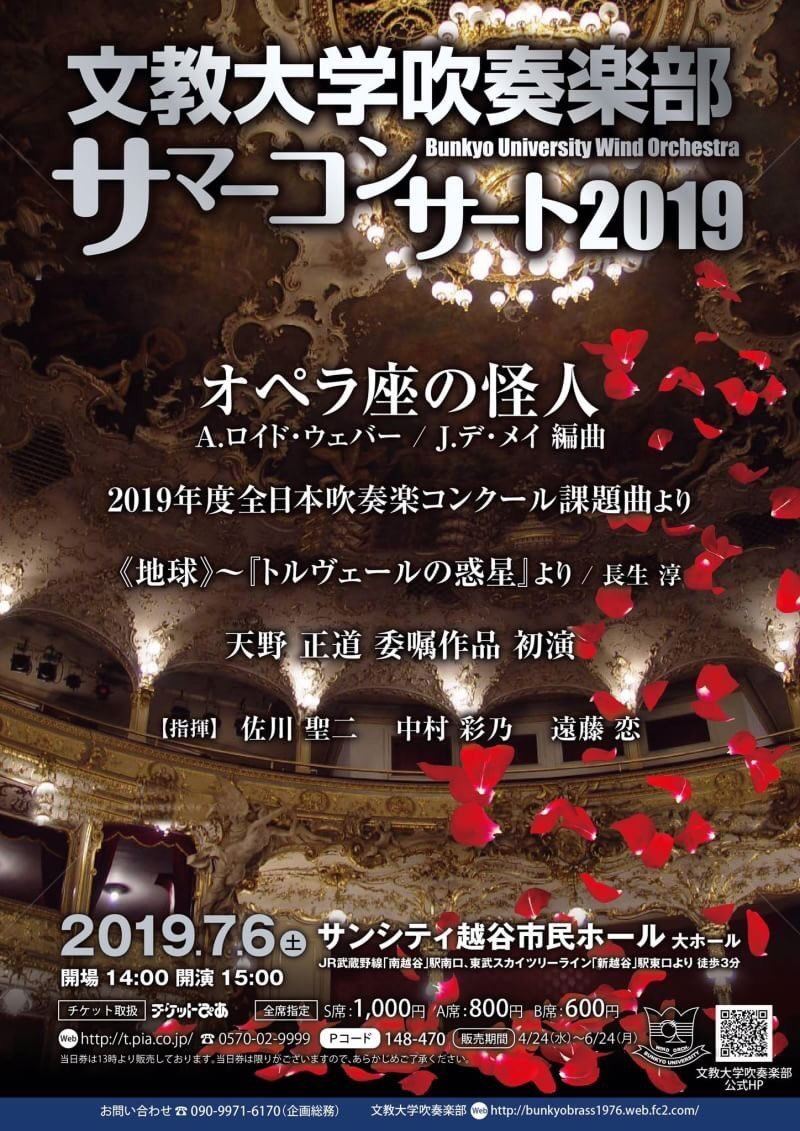文教大学吹奏楽部 サマーコンサート2019 19/7/6(土) サンシティ越谷市民ホール 大ホール シェア ツイート A.ロイド・ウェバー、J.デ・メイ編曲:オペラ座の怪人 他 公演情報 ジャンル 吹奏楽 料金 S席:1,000円A席:800円B席:600円 表示できるチケット情報はありません詳しくはこちら キャスト&スタッフ 吹奏楽 文教大学吹奏楽部 指揮:佐川聖二、中村彩乃、遠藤恋 お問い合わせ 文教大学吹奏楽部 企画総務 公式サイト シェア ツイート