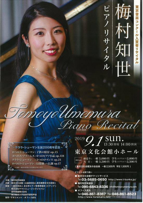 梅村知世 ピアノ・リサイタル/東京音楽コンクール入賞者リサイタル 19/9/1(日) 東京文化会館小ホール シェア ツイート R.シューマン:子供の情景 op.15/ブラームス:6つの小品 op.118/C.シューマン:3つのロマンス op.21/R.シューマン:幻想曲 ハ長調 op.17 公演情報 ジャンル ピアノ・鍵盤楽器 料金 自由:3,000円学生(大学生以下):2,000円※友の会各500円引き キャスト&スタッフ ピアノ:梅村知世 お問い合わせ オフィス虎丸 公式サイト シェア ツイート