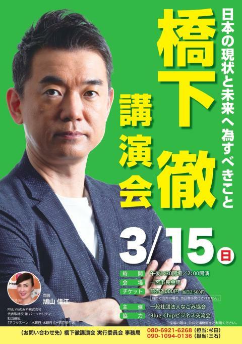 橋下徹講演会 20/3/15(日) 一宮市民会館 シェア ツイート 日本の現状と未来へ為すべきこと 開催情報 ジャンル トークイベント 料金 全席自由-2,000円 表示できるチケット情報はありません詳しくはこちら キャスト&スタッフ 出演 橋下徹 [出演]橋下徹 お問い合わせ 橋下徹講演会 実行委員会 事務局 シェア ツイート
