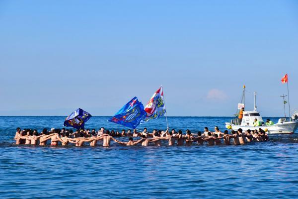館山湾寒中水泳大会 24/1/20(土) 千葉県館山市/北条海岸(三軒町無料休憩所前) シェア ツイート 冬の北条海岸で、昭和23年(1948年)から続く寒中水泳大会が行われます。この大会は、大正時代の旧制安房中(現在の安房高校)水泳部の寒中稽古として始まったもので、今では館山市の新春恒例行事として定着しています。※写真などの撮影は、大会スタッフおよび報道関係者以外は禁止 開催情報 ジャンル 季節 開会式/11:00、水泳/11:30(約5分) ※荒天の場合は中止 料金 参加費無料 ※参加には事前申込が必要(詳細はホームページをご確認ください) お問い合わせ 館山市教育委員会教育部スポーツ課 公式サイト シェア ツイート