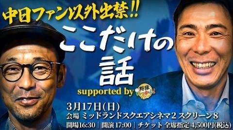 中日ファン以外出禁!! ここだけの話 supported by 野球いっかん! 24/3/17(日) ミッドランドスクエア シネマ2 スクリーン8 シェア ツイート 開催情報 ジャンル トークイベント ※膝上3歳まで無料、4歳以上有料。 料金 全席指定-4,500円 表示できるチケット情報はありません詳しくはこちら キャスト&スタッフ 出演 荒木雅博 英智 [出演]荒木雅博 / 英智 お問い合わせ サンデーフォークプロモーション 12:00~18:00 シェア ツイート