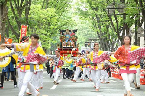 仙台すずめ踊りの華麗な演舞と伊達時代絵巻巡行で彩る、杜の都仙台を代表する初夏のまつりを桟敷席で体感!