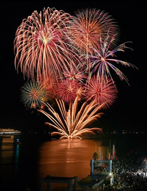 花火打上20:00~20:40予定。5歳以下無料。未就学児は保護者同伴に限り入場可。雨天決行、荒天の場合は順延の可能性あり。順延の場合は7/26(土)に変更。雨天決行時、テント及び傘の使用禁止。レインコート、ポンチョ推奨。お客様都合の払戻不可。チケット1枚につきブルーシート1枚付(1.8m×1.8m)。ブルーシートは本部受付で引換。チケット要提示。桟敷席は1枚のチケットで最大4人(5歳以下含まない)まで入場可。駐車場内のトラブルは責任を負いません。駐車場住所:〒985-0015宮城県塩竈市中の島4-20