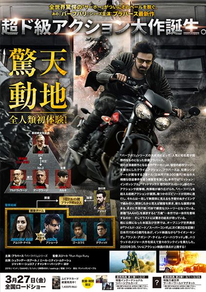 『バーフバリ』シリーズで日本でも知られる存在となったインドの人気俳優、プラバースが主演を務めたクライムアクション。架空の都市を舞台に、大規模窃盗事件の捜査に乗り出したひとりの捜査官の活躍をド派手なアクション満載で描く。監督を務めるのは、『バーフバリ』のS・S・ラージャマウリ監督の愛弟子だという注目の若手、スジートだ。