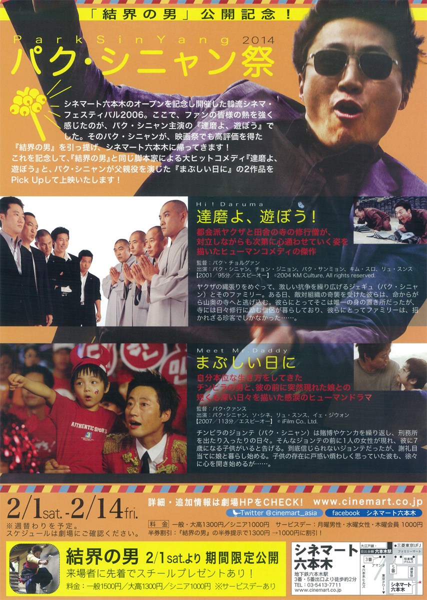 『パリの恋人』のパク・シニャンが都会派ヤクザのボスを好演し、韓国での公開時には400万人を動員した大ヒット作。縄張りをめぐっての抗争から身を隠すため、寺へと逃げこんだヤクザと彼らを囲む僧侶の交流がユーモアたっぷりに描かれる。