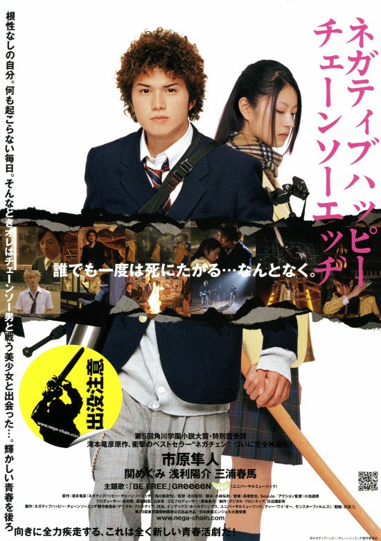 若い読者から多くの支持を集める作家、滝本竜彦の代表作を映画化。「高校生たちが日夜、チェーンソーを振りかざす男と対決する」という不条理な設定を用いて、青春期を迎えた若者たちの不安や憂鬱を描き出していく。出演作の続く市原隼人と関めぐみが主演を務めるほか、『恋空』の三浦春馬が重要な役どころで出演するなど、若手俳優陣に注目だ。