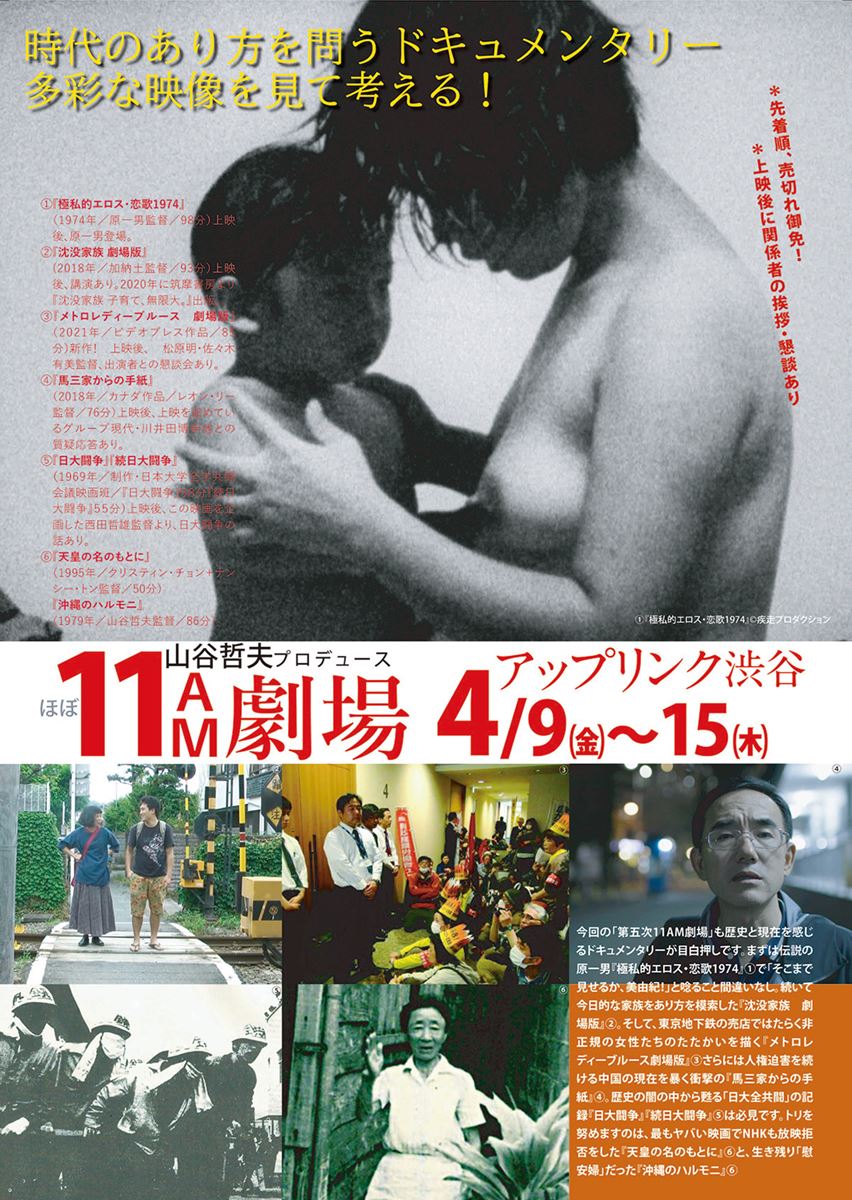 ※4/11(日)・4/13(火)は上映後に松原明監督、佐々木有美監督、後呂良子、加納一美、瀬沼京子、疋田節子によるトークショーあり(登壇者は予定)
