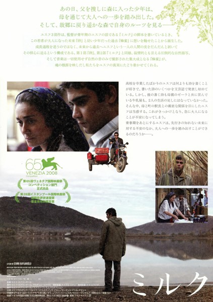 『蜂蜜』が2011年アカデミー賞の外国語映画賞・トルコ代表でノミネート。デビュー からわずか5作品で40以 上の映画賞を受賞したセミフ・カプランオール監督の2008年度作。小さな牛乳屋を 営む母とふたり暮らしをしながら、つつましく暮らす少年ユスフの姿を通して、近年、経済的、社会的に大きな変化を遂げつつあるトルコで暮ら す人々の心の痛みを描く。
