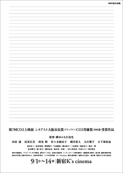 初監督作品『美しい術』で注目を集めた大江崇允監督による人間ドラマ。コミュニケーションが断絶している親子が、“嘘の日記”を媒介にコミュニケーションをとる姿を通して、嘘の中に埋もれている現実世界で生きる上での真理を巧みに描き出す。コミュニケーションの形態が多様化した現代を象徴する内容で、第7回CO2で大阪市長賞を受賞している。