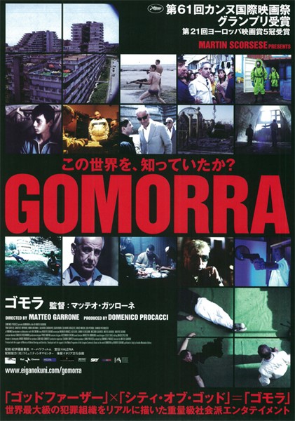 イタリアのナポリを拠点に実在する犯罪企業組織“カモッラ”の暗部をドキュメンタリータッチで暴いた社会派エンタテイメント。かつてのマフィアを凌駕する権力と経済力を持ち、ドラッグの売買をはじめ数々の犯罪を行う巨大組織カモッラ。そこに自ら潜入し事実を記したベストセラー『死都ゴモラ』を、若き巨匠マッテオ・ガッローネが映画化。