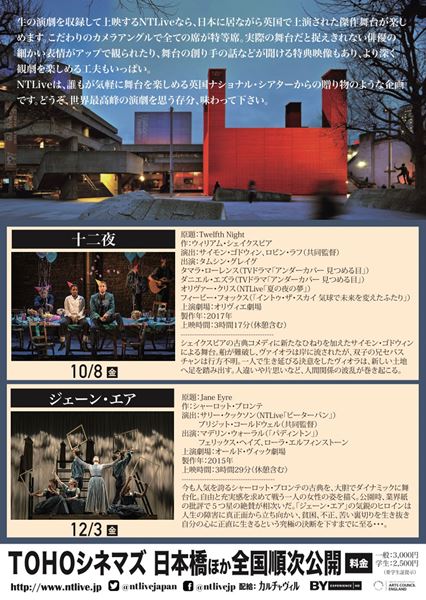 2017年に製作されたシェイクスピア喜劇が、ナショナル・シアター・ライブに登場。船が難破し、ひとりで生き延びようと、新天地で奮闘する女性の姿が描かれている。演出は、岡田将生主演の『ハムレット』の演出も行ったサイモン・ゴドウィンが担当し、新鮮さを感じられるものに仕上げた。演じるのは、タマラ・ローレンス、ダニエル・エズラら。