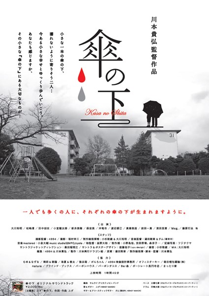 バンド、ハニーメーカーの湯田剛章が書き下ろしたバラード『傘の下』をモチーフに、川本貴弘監督が書き上げた脚本を自ら映画化したラブストーリー。東京、高円寺、京都を舞台に、3組の男女の物語を詩情豊かな音楽と共に繊細に綴る。ルードボーンズの大川裕明が主演を務めるほか、ヒロインをインディーズ映画で活躍中の新井美穂が務めている。