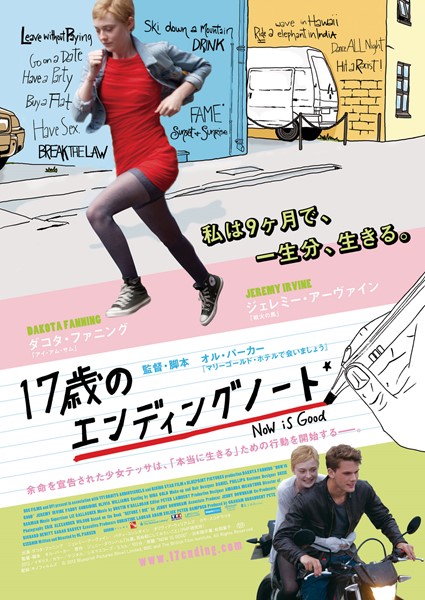 天才子役としてデビューし、着実にキャリアを積んできたダコタ・ファニングと、『戦火の馬』で注目を集めた英国の新鋭ジェレミー・アーヴァインが共演する青春ドラマ。17歳にして余命9か月と宣告されてしまった少女が、人生でやり残したことを次々に実行していく中で、生きる意味を見出していく。監督は脚本家として活躍するオル・パーカー。