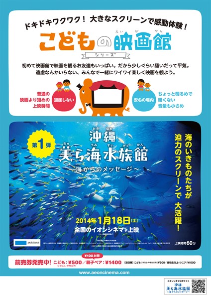 映画で何かを学ぶきっかけを作りたいとの意図で企画された“こどもの映画館シリーズ“の第1弾。“家族“をテーマにした本作では、沖縄美ら海水族館で働く父親を訪ねるために東京から家族が集合し、水族館の生物たちを観覧する姿を映し出す。劇場の大画面で海の生物の知られざる生態系を観たり、クイズに挑戦したりと家族で楽しむのに最適な1作。
