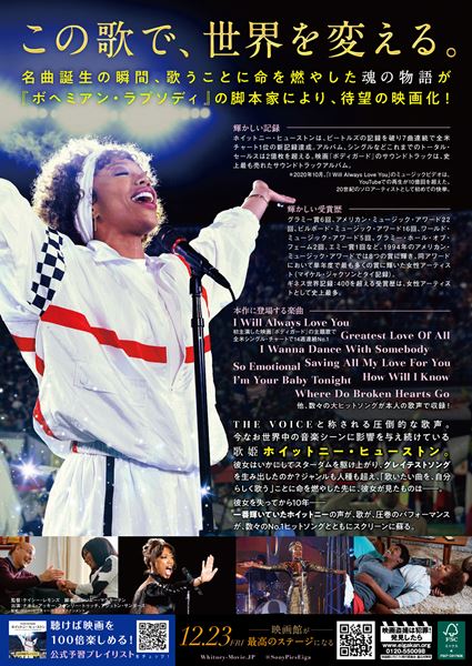 アリスタ・レコードの社長で、プロデューサーのクライヴ・デイヴィスは、母親のステージで歌うホイットニーの圧倒的な才能に魅せられスカウトする。“歌いたい曲を自分らしく歌う”ホイットニーは、ジャンルも人種も越え瞬く間にスターダムを駆け上がっていく。