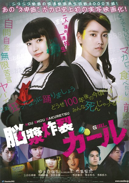 ボーカロイド楽曲の動画として注目を集め、続いて発表された小説もベストセラーとなっている『脳漿炸裂ガール』を実写映画化。女子高生の市位ハナと同級生の稲沢はなが理不尽なデスゲームに巻き込まれていく。注目の両主人公を演じるのは、人気上昇中のアイドルユニット“私立恵比寿中学“の柏木ひなたと、若手実力派として頭角を現す竹富聖花。