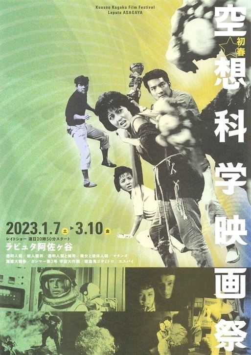SF小説は、かつて日本では「空想科学小説」といわれた。透明人間、雪男、サイボーグ半漁人、超能力者など、日本映画で多く作られたSF映画の数々を、ラピュタ阿佐ヶ谷が、連日20時50分からレイトショーで上映する。孤島に流れついた男女が遭遇する怪キノコの恐怖『マタンゴ』(監督:本多猪四郎)、シャンソン歌手・高英男が吸血鬼を演じた『吸血鬼ゴケミドロ』(監督:佐藤肇)といったモダンホラー、カルトムービーが勢揃いする。 【開催日】2023年1月7日(土)〜3月10日(金) 【上映館】ラピュタ阿佐ヶ谷 ※スケジュール・プログラム等の詳細は下の【公式サイト】でご確認をお願いします。