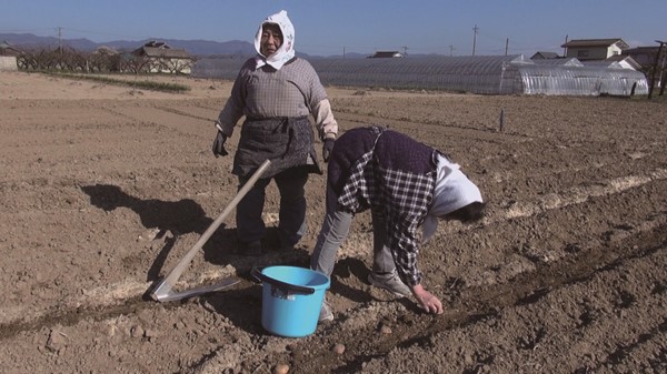 今も仮設住宅で暮らしている79歳の菅野榮子さんと、78歳の菅野芳子さん。畑を耕し、様々な料理を作り、励まし合いながら生活している。そんなふたりは、村の食文化を途絶えさせないために、昔ながらの食べ物の作り方を各地に出向いて教えるようになる。