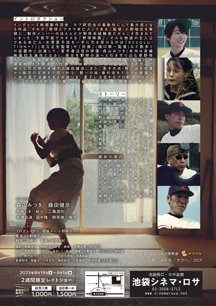 インディーズ映画製作団体、カブ研究会が手がけた野球映画。最愛の夫を亡くした妻が、草野球チームの監督に才能を見出され、個性的な面々と共に、野球にのめりこんでいく様を描きだす。監督を務める小野峻志をはじめ、製作陣のほとんどは野球未経験。出演は『共振』の森山みつき、『とおいらいめい』の藤田健彦、井筒しま、秋斗、工藤潤矢ら。