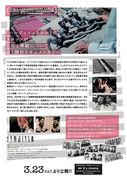 第50回ベルリン国際映画祭最優秀記録映画賞に輝いた、ナチス政権下のドイツで施行されていた同性愛を禁止する刑法175条をめぐるドキュメンタリーをデジタルリマスター版として上映する。6人の男女の証言を通し、ナチスによる弾圧を暴いていく。監督はロブ・エプスタイン&ジェフリー・フリードマン。ナレーションはルパート・エヴェレット。