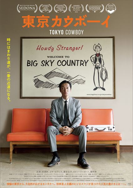 『福田村事件』の井浦新が、アメリカ映画デビュー・初主演を飾ったヒューマンドラマ。アメリカのモンタナ州に出張した日本のビジネスマンが、カウボーイ文化に触れて徐々に変わっていく様を描く。監督は『男はつらいよ 寅次郎心の旅路』の海外現場に携わったマーク・マリオット。共演はゴヤ・ロブレス、藤谷文子、ロビン・ワイガート、國村隼ら。