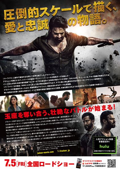『バーフバリ』シリーズのプラバースが主演を務めるヒーローアクション。インドが恐れる謎の都市国家の王位継承争いに巻きこまれた親友を助けるため、超人的な力と頭脳を持つ主人公が立ち向かう。監督は『K.G.F』シリーズのプラシャーント・ニール。共演はプリトヴィラージ・スクマーラン、シュルティ・ハーサン、ジャガパティ・バーブら。
