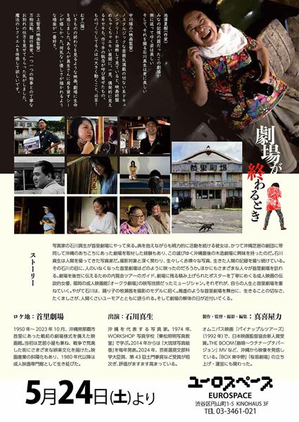 2022年に幕を下ろした沖縄県最古の映画館・首里劇場の館長の半生と、写真家・石川真生の姿を追ったドキュメンタリー。戦後復興の中で沖縄で賑わいの中心となった映画館の歴史と、病を抱えながらも劇場の最後の姿をカメラに収めた写真家の姿がリンクしていく。監督は真喜屋力。出演は石川真生、金城政則、 牧瀬茜、ほたる、とんちピクルスら。